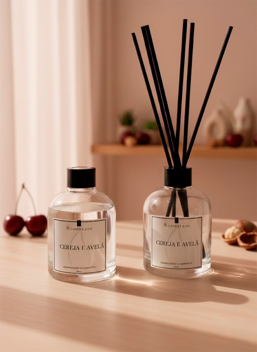 O aroma de cereja e avelã é uma combinação deliciosa e harmoniosa que mescla a doçura frutada da cereja com a suavidade e a riqueza da avelã. Essa fragrância é frequentemente descrita como envolvente, gourmand e reconfortante.